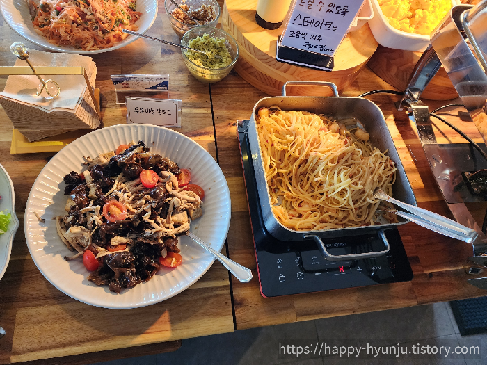 기장 일광 바다가 보이는 곳에서 뷔페식으로 스테이크와 사이드 디시를 즐길 수 있는 곳
