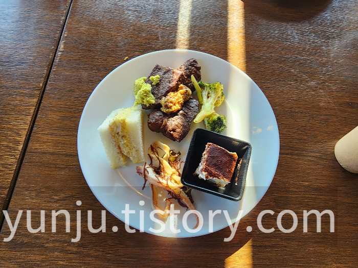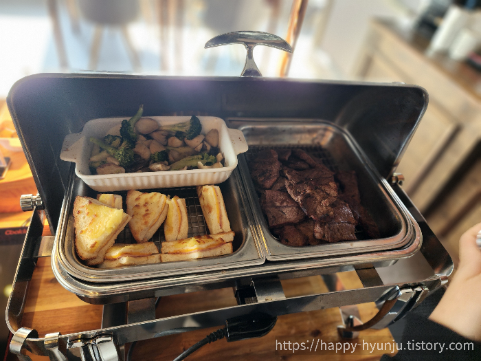 스테이크는 마음껏 가져다가 먹으면 되는데 양이 적어 보이지만 수시로 주방에서 채워 넣어주셨다