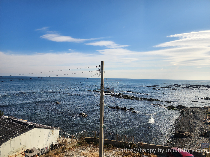 아무래도 창가 자리가 바다가 보여서 좋기는 하다.