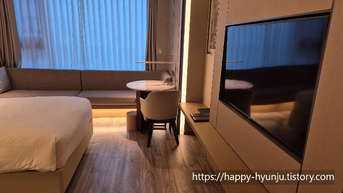 객실에 설치된 옷장이 매우 넓고(슬리퍼2개, 가운 2개 비치), 잘 이용하지는 않지만, 금고가 설치되어 있다