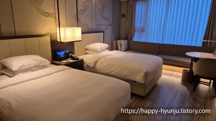 4인 가족이 입실이 가능한 룸, 비흡연룸을 이용했고 더블베드 2개가 설치되어 있다.