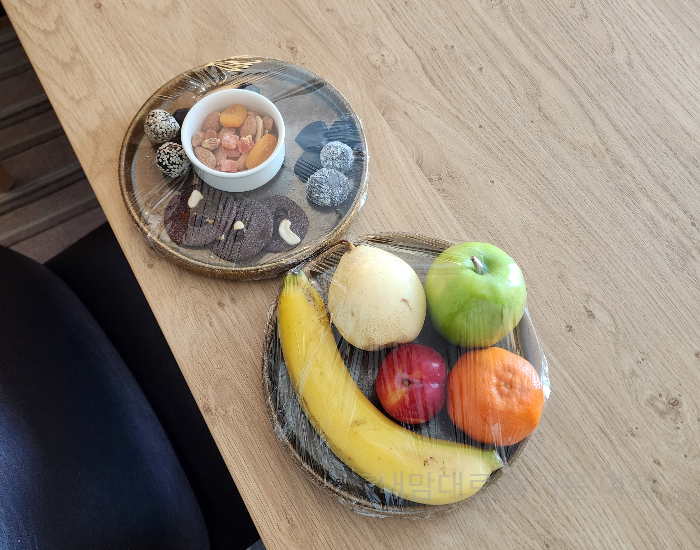 2일 연박했는데 1일 차에 외출했다가 돌아오니 이렇게 웰컴 푸드를 챙겨주심