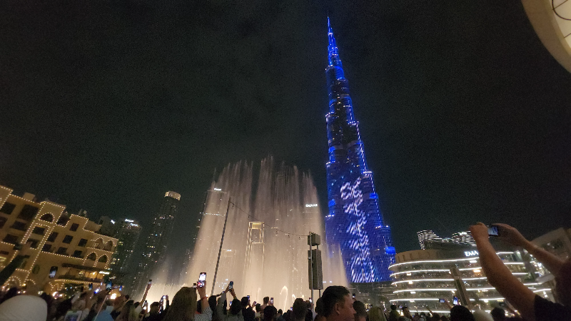두바이몰 저녁 분수쇼는 두바이의 대표적인 관광 명소 중 하나로, 세계에서 가장 큰 분수쇼 중 하나다.