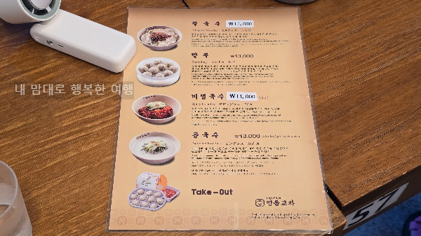 그 중에 테이크 아웃 만두 메뉴를 제외하고 매장에서 식사를 할 수 있는 메뉴는 딱 네개 뿐인데