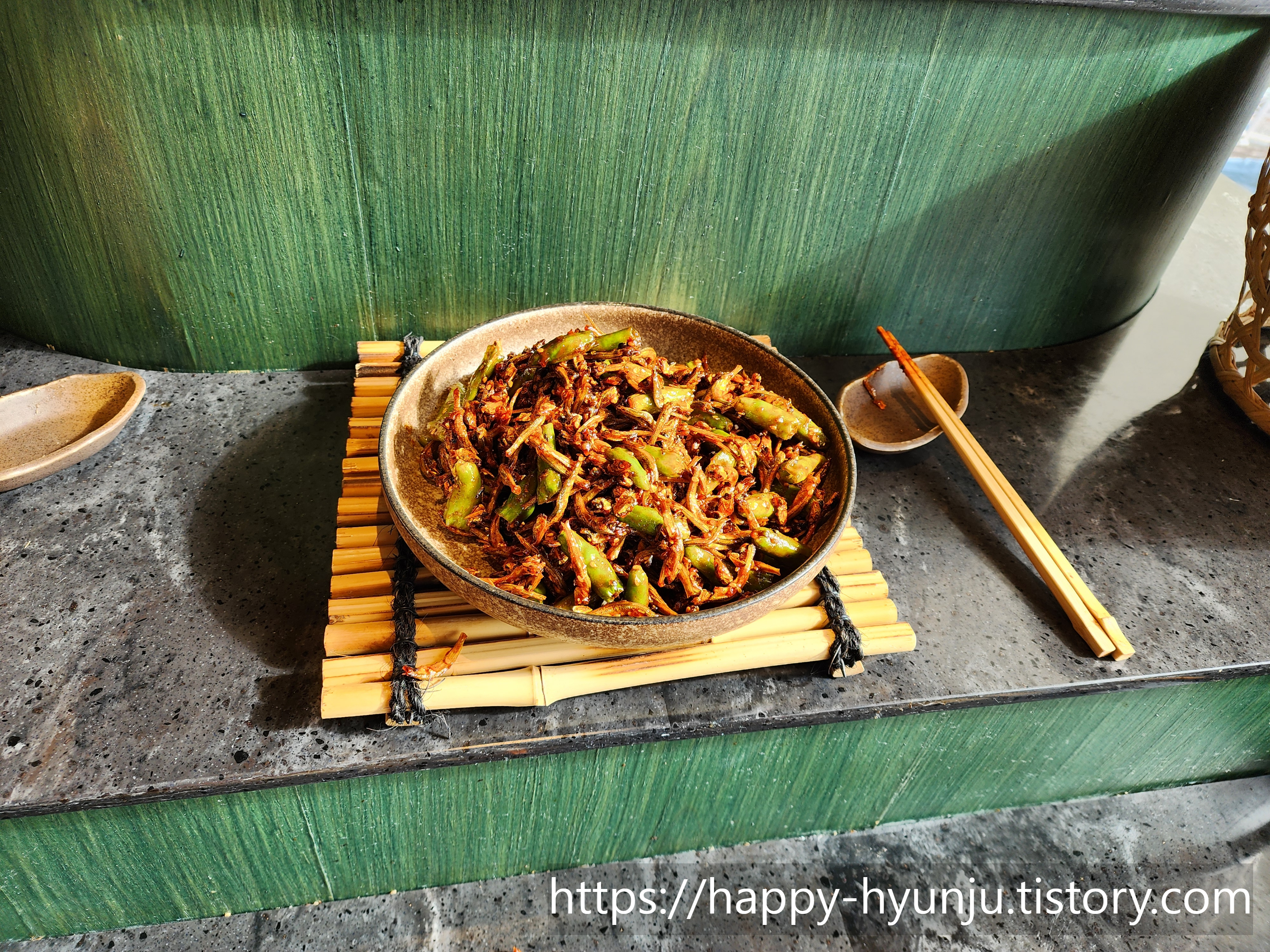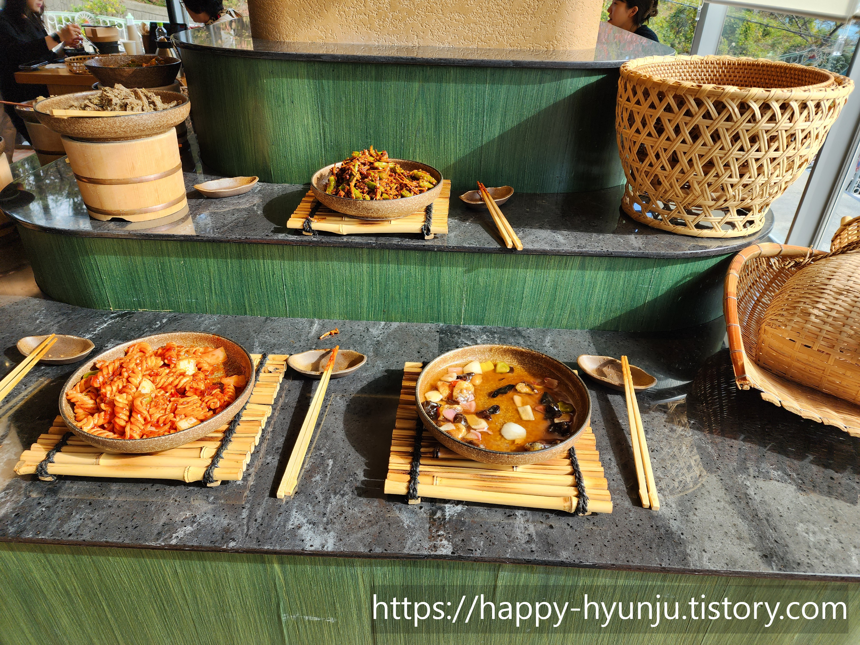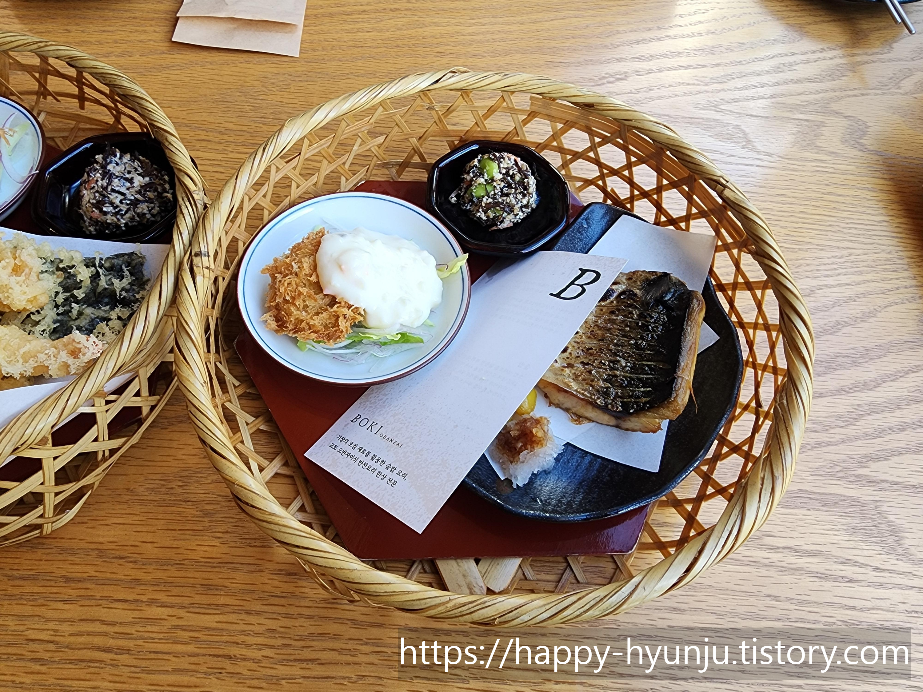 메인 반찬은 이렇게 바구니에 담아서 나오는데, 같이 나오는 반찬들이 양은 작아도 하나같이 맛있더라.
