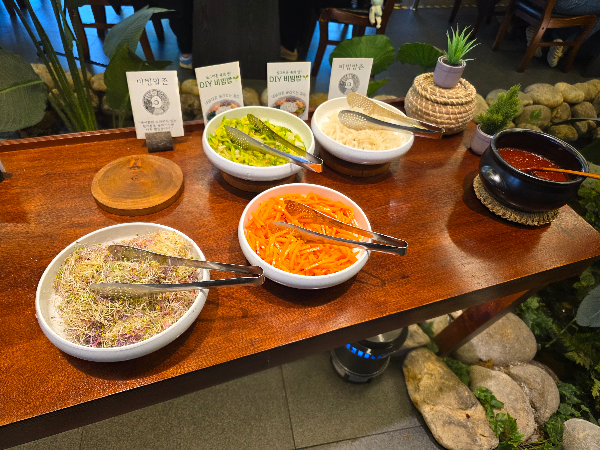 봄나물 비빔밥을 먹을 수 있게 약고추장과 나물류도 준비되어 있다
