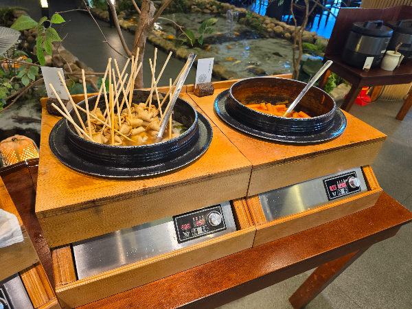 떡볶이, 야채류, 밥, 나물반찬 오뎅국 등을 마음껏 가져다 먹을 수 있어서 인기 만점