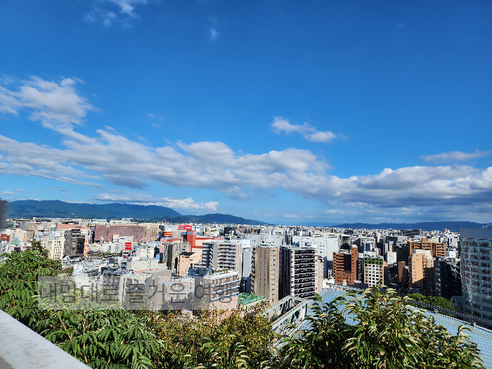 위로 올라가면 나름 전망대처럼 후쿠오카 전경을 볼 수 있고 비행기가 날아다니는 것도 종종 목격할 수 있으며