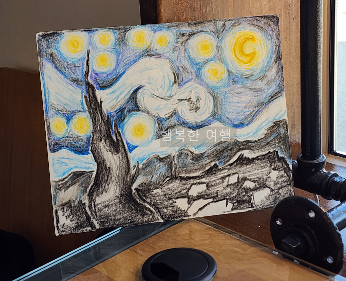 중학생이 그린 고흐의 별 헤는 밤 회화는 휴대폰으로 그림 찾아보면서 후딱 그린 건데 감히 내가 따라 할 수 없다