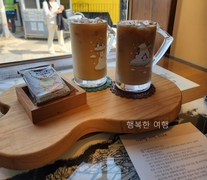 이렇게 이쁜 컵에 간식과 함께 내어주시는 음료는 가격도 아주 착하다.