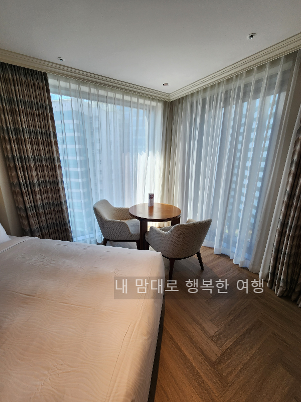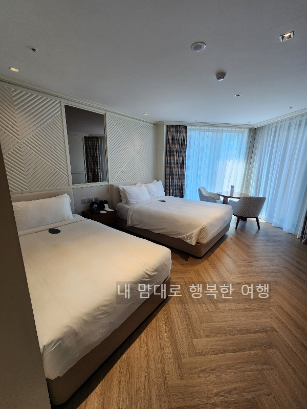체크인은 참 편리했고, 배정받은 12층 트윈룸으로 올라가 보니 가장 마음에 들었던 거는 깔끔한 침대와 함께