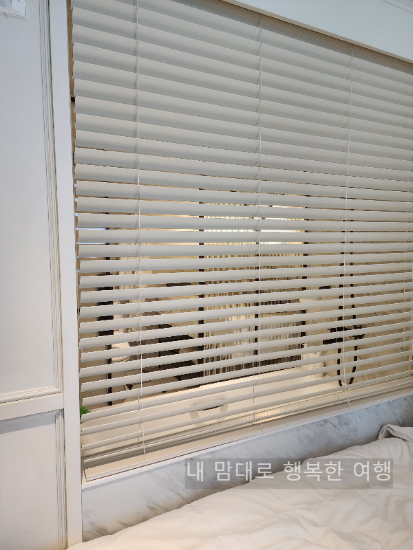 윤곽이 보이는 게 아니라 그냥 다~~~~ 보인다.... 블라인드 각도 조절장치가 없다. 방을 잘못 배정받은 것 같아서